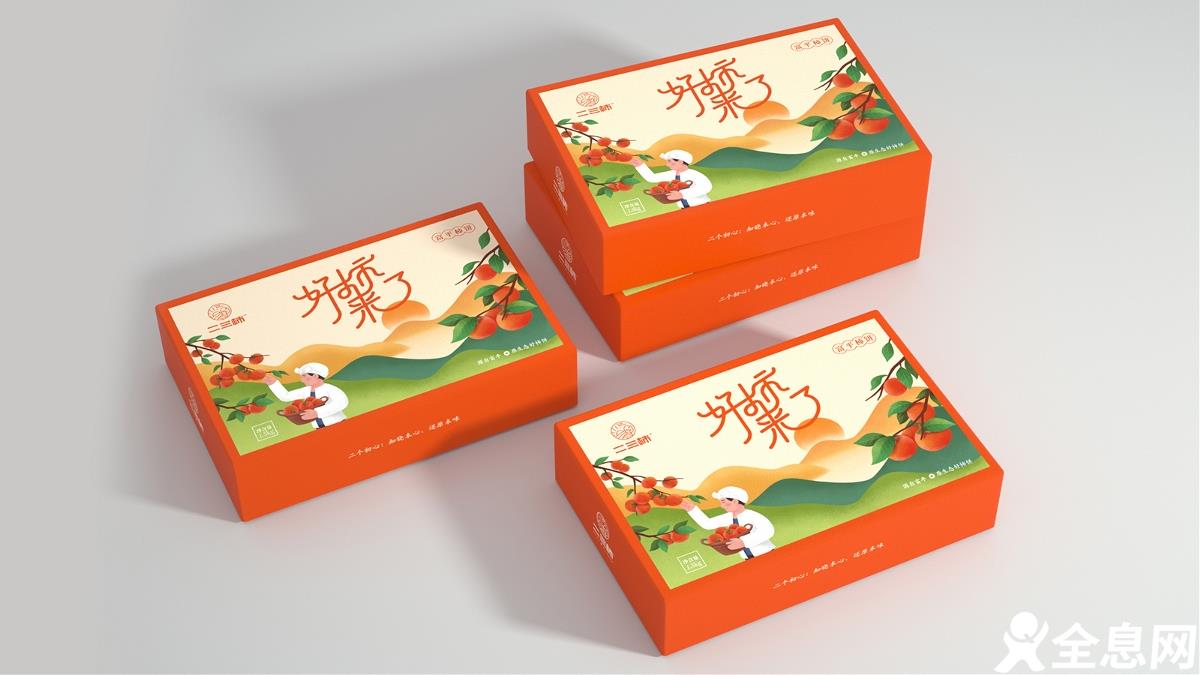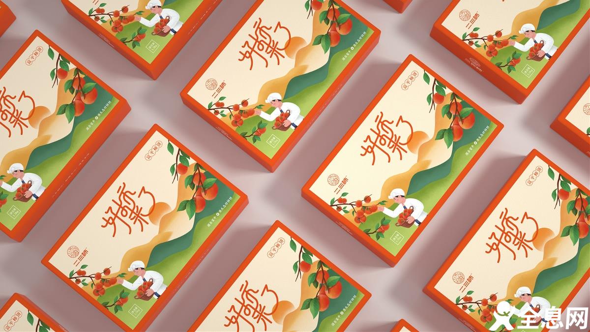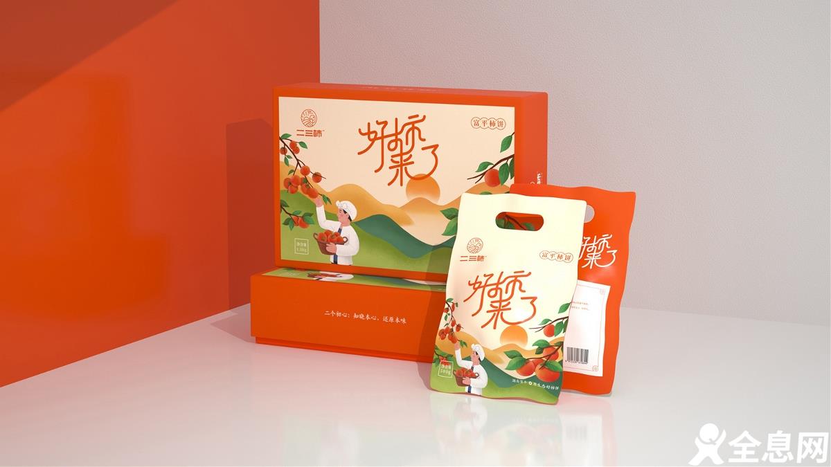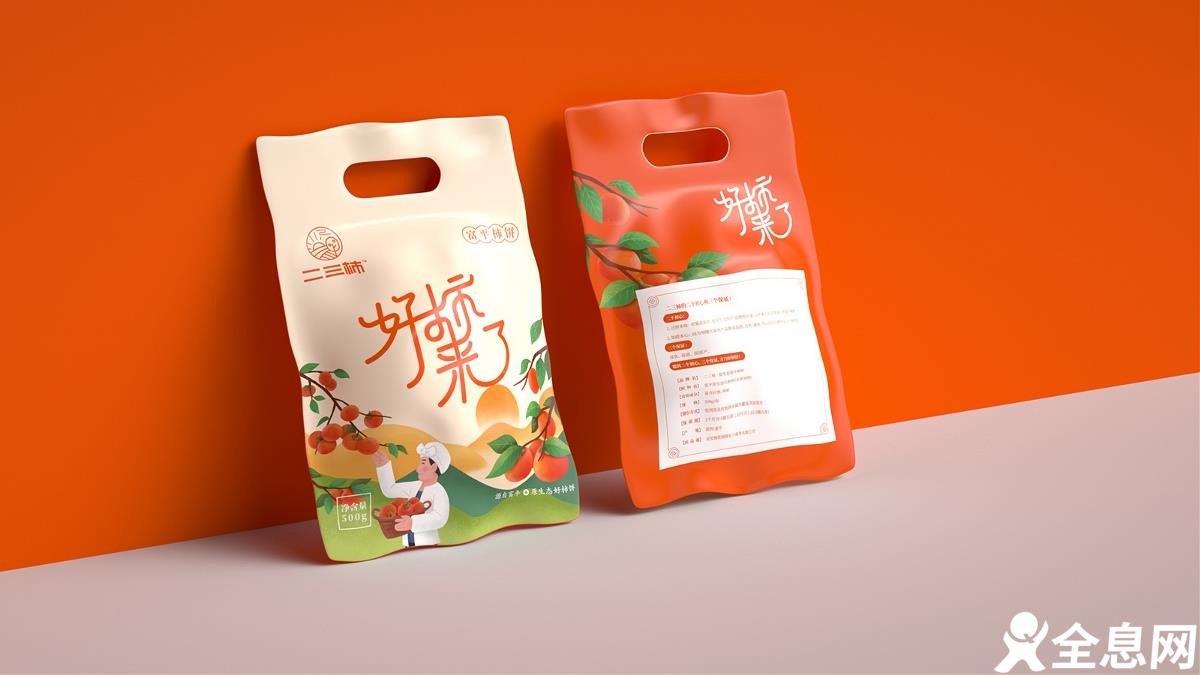 现在很多设计师都将插画风运用到各类各样的包装设计中,就如这款农产品包装就将插画融入到了包装中,一副勤劳农民摘柿子的画面,最能反映劳动人民收获的喜悦!