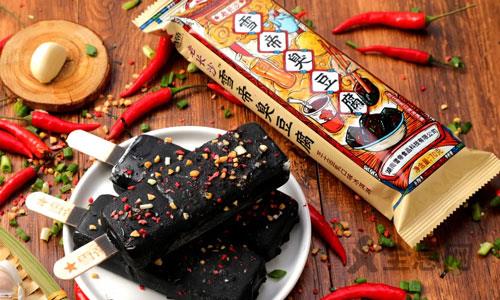 长条的包装设计会更舒适些,过于繁杂的设计容易引起视觉疲累,但是这个层次丰富的国潮风格,放在冰淇淋货堆里却显得尤其突出。