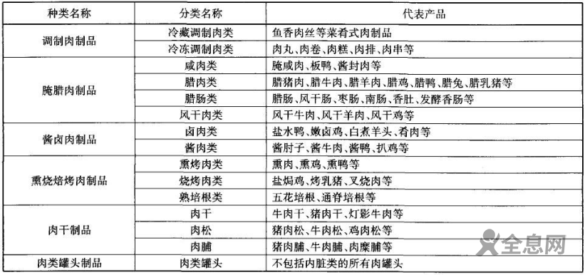 首先看一下肉制品的分类,包括:调制肉制品、腌腊肉制品、酱卤肉制品、熏烧焙烤肉制品、肉干制品和肉类罐头制品几大类别。