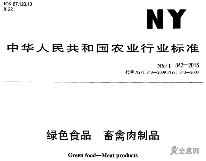绿色食品向来代表着食品领域的很高的水平,《NY/T843-2015绿色食品畜禽肉制品》就是从感官、理化指标、污染物限量、兽药残留限量、食品添加剂限量、微生物限量等方面对肉制品的质量做了详尽的规范。