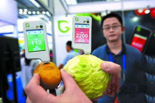 记者在现场看到,一块小巧的食品安全检测仪吸引了不少观众驻足。使用者只需将该检测仪的探头插进水果蔬菜中,产品内置芯片只需3秒便可精准检测出果蔬或肉类中的硝酸盐、硫酸盐、氯化物和硫化物等含量,并结合各种果蔬及肉类自身的含量数据,转换出平均含量单位,对比中国国家标准后给出测量结果及是否可食用的建议。
