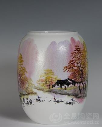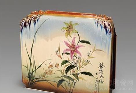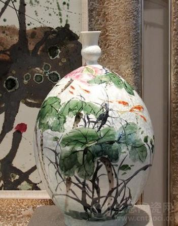 泼彩是国画的一种技法,主要用于山水画和花鸟画上。赖德全大师的釉上泼彩作品,以国画泼彩之技,运用陶瓷釉上之功,融抽象与巨像之和,唯黄金构图之美,其作品题材涵盖山水,人物和花鸟,其意境、气势、魅力和神韵多姿呈现。