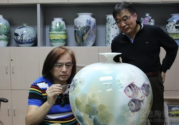 赖德全大师“舍笔而用之于指掌”,独创了用手指、手掌在陶瓷上作画的新工艺,被称为景德镇一绝。他通过指掌准确生动的物象描绘,给人一种切入肌肤的美感,可谓是“灵气四溢,妙手生花”。