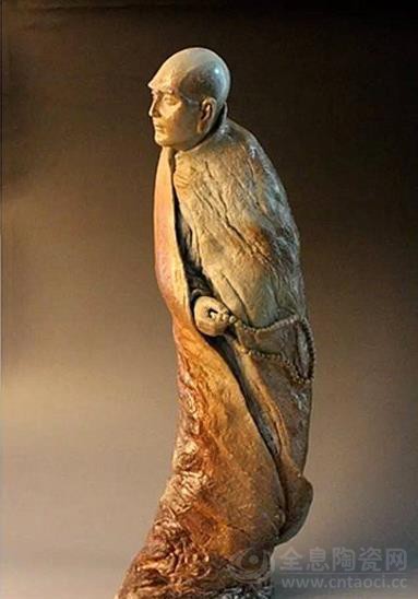 作品以独特的陶艺技法——泥条盘筑,概括成型张大千的基本轮廓,抓住张大千潇洒飘逸的艺术家风采,精心塑造画家形体结构,力求形似。重点刻划画家深邃豁达的眼神,并用特殊的陶艺手法表现出他那最具特色的浓密美髯,力求辨识清晰、形神兼备。