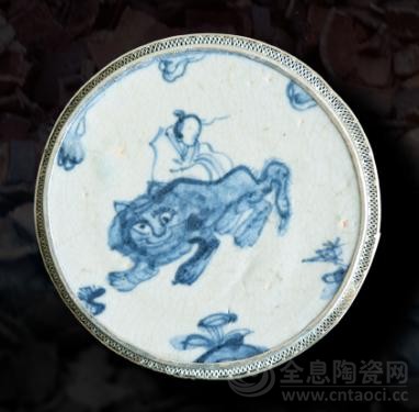 青花装饰人物构图大胆,人物常与狮、虎、马、鹿等瑞兽组合,鹤、鸭及游鱼等也与人物互动,寓意深刻,人物在画面中还寄情山水,特别是“诗意”的题材,画 风简炼、用笔疏落、意象寥阔、格调高雅,体现在用线造型的美感上。制瓷艺人还从市井戏曲文化中获取丰富瓷绘创作的艺术营养,将这些民间艺术中的动人情景移植到瓷绘上来,从而开创了青花瓷器装饰的新篇章。