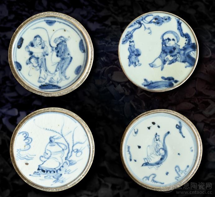民窑青花装饰以人物题材作为装饰,是非常普遍常见的。青花瓷人物题材中有宗教的神话故事,如福禄寿三星、八仙、十八罗汉、和合二仙等,有历史故事鸿门宴、昭君出塞等,戏曲和文学名著有西厢记、仕女图、三国演义等,儿童题材有各式各样的婴戏图、百子图等,此外还有反映农家生活的耕织、牧牛、樵夫图等,画风活泼自然。