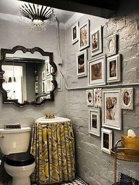 装修tips:这个卫生间的主基调是艺术气息十足的灰白色。灰白色系的卫浴空间里,墙面上的白色画框让卫生间的艺术气息更加浓郁,加以黑框花边大镜面嵌于墙面上,在艺术氛围中还具有了一种复古韵味,既精致又优雅无比。