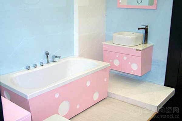 这款卫浴设施一粉色蓝色为主调,适合小女孩使用。当然不仅仅于此。浴室柜最下面一层可以抽出来,方便孩子个子还没有长高的时候站在上面使用脸盆和浴室镜。