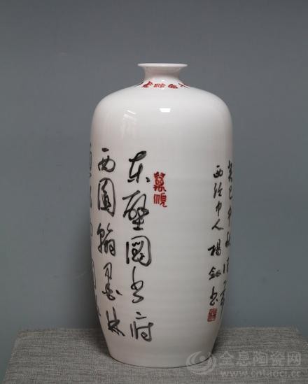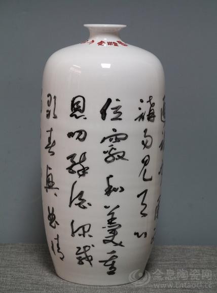 杨剑草书景德镇小口瓶《唐张说诗》(釉上彩,高39.2cm,直径18cm,口径6.5cm,150件,2013.9.21.创作,江西上饶卢秀梅藏)
