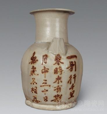 从本体方面来看,长沙窑在当时虽然没有引起人们的重视、被排除在“七大名窑”(2)之外,但在瓷业生产“南青北白”(3)的单调格局中,长沙窑开创了比青瓷、白瓷更复杂的“釉下彩”工艺:青瓷、白瓷只是在成形的瓷胎外表简单直接地覆施一层青釉、或白釉后即入窑煅烧,而“釉下彩”是在瓷胎外表先以毛笔绘彩而后覆施釉水、最后再入窑烧造。虽然,工艺复杂了,但由此带来丰富多彩的装饰效果,是青瓷、白瓷无与比美的。——在“二次煅烧法”(4)还没有发明使用的历史条件下,只有开创“釉下彩”工艺,古瓷器书法才具有诞生、存在的土壤。