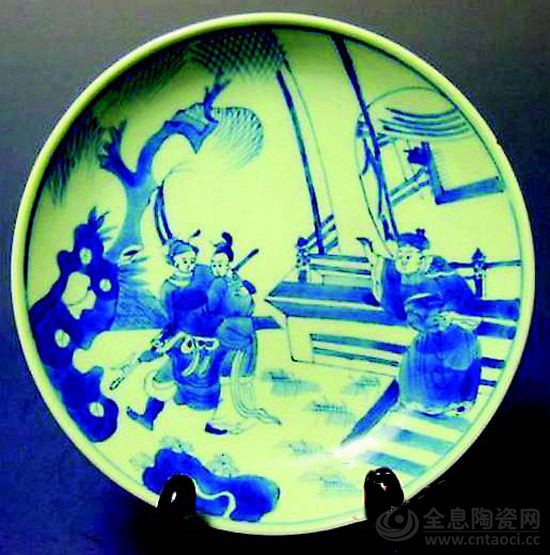 吕布和貂蝉。“女人用爱情让世界更精彩,”吕布和貂蝉的故事出自《三国演义》第八回,“王司徒巧施连环计,董太师大闹凤仪亭”。讲述在王允的安排下,貂蝉巧妙周旋在董卓和吕布之间,终于令两人反目成仇的故事。这只清代青花瓷盘,直径18厘米,高3.5厘米。上面绘制的图案正是“吕布戏貂蝉”的情形。只见凤仪亭外,柳树依依,吕布一手拿方天画戟,一手揽着貂蝉,貂蝉以袖掩面,凄凄切切似在诉说心中委屈;而在凤仪亭里,董卓正躲在墙角偷听两人的谈话。吕董两人的矛盾由此激化,战事一触即发。