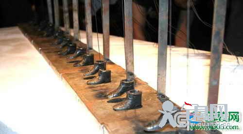 图为数十双铁制鞋子不停的跳着踢踏舞