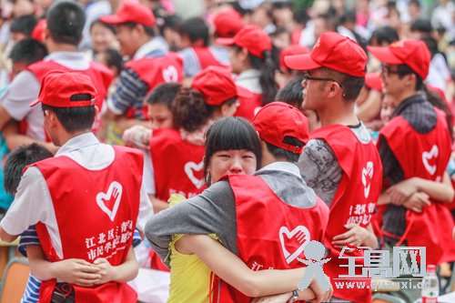 5月31日,200余名志愿者为重庆市江北区复盛镇实验学校的留守儿童送上温暖而亲切的拥抱。新华社记者 陈诚 摄
