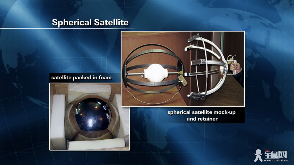Spherical卫星重9千克,直径53厘米,呈球形,俄罗斯科学家将它作为一个太空目标,测试太空跟踪技术,这种技术将用于监视太空垃圾;还要测试它如何重返大气层。这个小球预计在轨停留三个月,之后坠向地球。
