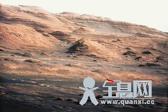 “好奇号”火星车拍下高清晰度彩色照片,可清楚看见一座层状石丘。高5000米山丘距离好奇号着陆点10公里。