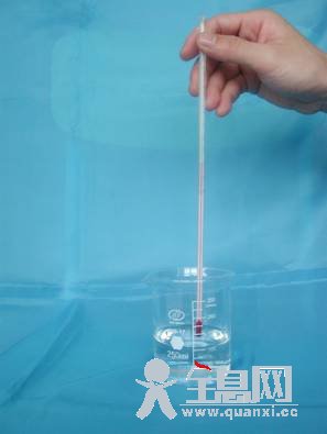 今天,我给学生上蒸发这一课。我们知道:液体蒸发时,温度要降低,于是要从外界吸收热量。为了使学生确认这一点,我让学生做如右图的实验:将温度计先浸入酒精中,然后从酒精中提出,观察温度计读数的变化。学生看到的现象是:温度计的读数降低。这是因为液体蒸发时,本身温度要降低。从而也说明液体蒸发时,会从外界吸收热量。