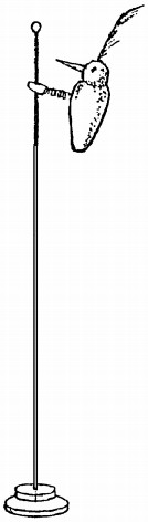 整个过程解释如下:由于头泡表面水分的蒸发,使头泡温度降低,内部的饱和汽压减小,而尾泡内的汽压不变,因此管内的液柱上升。当整体的重心到达支点的前上方时,小鸟低头饮水。一旦低到使尾泡内的玻璃管口与其中的气室相通时,乙醚蒸气将沿管上升,于是管中的液体就会倒流入尾泡内,从而使小鸟又抬起头来。以后又不断地重复上述过程。