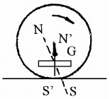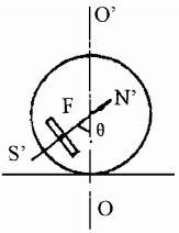 学生们带着问题继续探索,仔细观察和深入思考。有几种解决问题的途径:一种是画图分析,希望从理论上找出两个磁铁排列的方式;一种是实验尝试,请教师为他们提供铁屑和磁针,以便能够通过实验的方法找出两个磁铁的排列方式。采用第一种途径的学生,比较容易排除几种可能(图3):①两个磁铁呈竖直平行排列;②两个磁铁呈水平平行排列;③两个磁铁呈正交排列。由于学生理论上的不足,很难从理论上取得突破性进展。但既然已排除上述三种情况,余下的可能就是海狮内的磁铁与小球内磁铁呈锐角的关系(图4)。于是他们想到了用实验来证实这种想法。他们用一块磁铁来替代海狮,以各种方式接近小球,最终证实这种想法是正确的。采用第二种途径的学生,由于海狮内磁铁对铁屑和磁针的作用不够强,难以准确显示磁极的位置,因此也遇到困难。学生们在反复的实验观察中,不断地思考,不断地尝试、失败、否定自己原先提出的模型,再尝试,步步逼进问题的答案。有许多细微的现象,不到一定的火候是很难发现的,常常很难以逻辑推导的方式预示可能发生的现象。例如,将海狮推进到一定距离时,小球首先向一侧歪斜,然后才绕竖直轴旋转起来。由于向一侧偏的角度很小(以前进方向为轴顺时针或逆时针方向偏转),观察者是很难察觉到,但它对理解海狮戏球的运动原理却是十分关键的现象。小球内的磁铁处于自由状态时磁轴是竖直向上的,重心在球心的下方。海狮内磁铁的磁轴方向向上偏左(从前面观察),当海狮接近小球时(图5中海狮在球的后方),小球内的磁铁受到海狮磁场的影响将向顺时针方向偏转。偏转的结果将使球内磁铁的中心升高(即球的重心升高),且重力作用线不再通过球与台面的支承点(图6),至重力矩与磁力矩平衡时,小球不再偏转。值得注意的是,海狮磁场对小球磁铁的影响不只是在图示平面内向一侧偏转,而且还同时受到向前的推力F,这个力对于OO’竖直轴产生力矩的作用,因此它使小球同时绕竖直轴旋转。