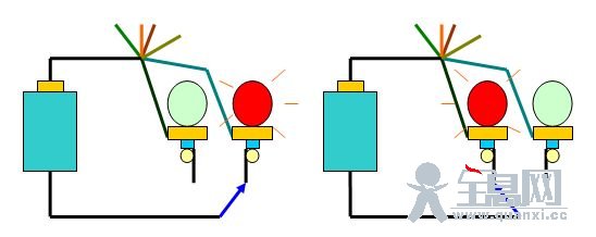 有一天小宝想做一个花灯,开关能开两盏灯的,让它开来开去,一个亮一个熄,熄了又亮,亮了又熄,多好玩!小宝想:过去用过两个开关开一个灯,现在要用一个开关开两个灯,那能不能把开关和电灯互相换一下呀?可是,天天要上课,要做作业,没空。