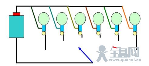 同学们一边玩,一边讨论,例如:“为什么开关线碰到哪个灯哪个就亮?别的灯不也都接在上面的吗!”;有的回答说:“灯泡有两根线,不可只接一根的!”;又有人问:“那把灯泡的下面一根线也接到上面去不就行了吗!”。反正越争论越有劲!都说,元旦要到了,我们做一个大花灯,圆圆的,会转的,还会正转右转的,挂到门口!多带劲!