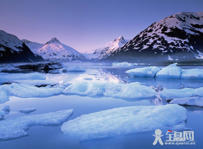 冰山是指从冰川或极地冰盖临海一端破裂落入海中漂浮的大块淡水冰,通常多见于北美洲的格陵兰岛周围。