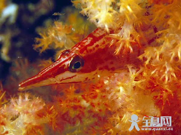 体极延长而呈长形;头背部平直;体背略隆起,腹缘近平直。吻延长如鸭嘴状。眼中大,近头背缘。前鳃盖骨后缘具锯齿;鳃盖骨后缘具棘。上颌骨达眼中央下缘;上下颌齿细小;腭骨齿不存在。体被小圆鳞;眼眶间隔裸露;侧线鳞数51-53。背鳍单一,硬棘部及软条部间具缺刻,硬棘部之鳍膜末端呈裂须状,硬棘数X,软条数13,第1软条不延长;臀鳍硬棘数III,软条数6;胸鳍最长之鳍条末端仅至肛门前。体灰白色,腹部较淡,头部具数条橙红色纵带,体侧由数条橙红色纵、横带交错而成的棋盘状图案。各鳍淡色,亦具橙红色的纵带或斑点。