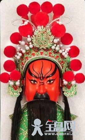 京剧人物的形象,大都是根据其人的个性和生理特征等塑造而成。关羽既是人们心中的神化人物,他是五虎上将之首,在舞台上有着(骨重神寒)的气概。《三国演义》中对他的描写是:(身高八尺,面如重枣,丹风眼、卧蚕眉、五绺长髯……)。小说中既然有了如此具体的描绘,因此在他的脸谱上,绝不可能毫无根据形成。关羽的脸谱自徽班进京后不断博采各地方剧种之长,在不断改革丰富中不断自我完善,在京剧形成的过程中,脸谱也在继承徽汉、昆戈、梆脸谱的基础上,由早期古朴简约的样式逐渐成熟日趋复杂细致。清初由于戏班上演的关羽的戏不多,其脸谱可能仍沿徽汉班的旧规勾画。