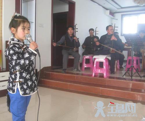 5岁的金子淇有些感冒,但还是精气神儿十足,她唱了《金沙江畔?小酸枣》选段,声音高亢,字正腔圆;6岁的金子欣带来的《杨三姐告状》选段《糊涂的妈》,唱得有板有眼,字句铿锵,那活脱脱的小表情也表现着杨三姐的刚烈不服输的性格。台下熟人、生人围了一大圈,可这对小姊妹一点儿不紧张,仿佛舞台就是他们自己的。