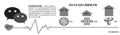新京报讯 (记者刘兰兰)运营商和腾讯的微信收费之争进入新阶段。腾讯微信团队4月9日晚间发布声明称,信令问题是运营商网络不能支持智能机时代APP长期联网特性而产生的。中国移动2.5G网络对信令处理能力比较弱。微信已启动针对2.5G网络的产品优化计划,正在和运营商运维部门共同探讨信令解决方案。国内三大运营商未对此发表意见。