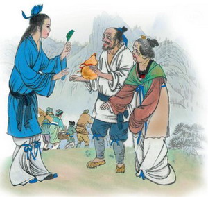 这一天仙长把恒景叫到跟前说:“明天是九月初九,瘟魔又要出来作恶,你本领已经学成,应该回去为民除害了”。仙长送给恒景一包茱萸叶,一盅菊花酒,并且密授避邪用法,让恒景骑着仙鹤赶回家去。