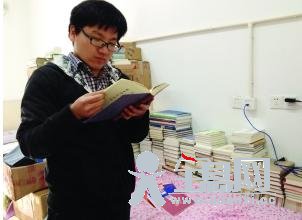 许勇说,小时候因为家在盐城农村,没有条件看书,所以7年前考进南大中文系后,他就大量买书,看书恶补。“我基本除了吃饭,钱都用来买书。”这些书,有的是从网上拍来的,有的是逛旧书店淘来的,也有网上书店搞促销活动买的。