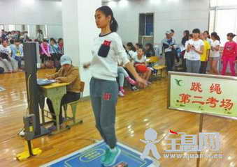考务人员提醒,个别考生因为一些小问题而拉分。比如,进行跳绳项目测试时,考生一定要注意上了垫子后就开始跳绳,而不要乱动,因为上垫子后一动,计时钟就会启动。此外,立定跳远项目注意不要犯规,因为该项目只有三次机会,截至目前已有个别学生出现了三次跳远三次犯规的情况。