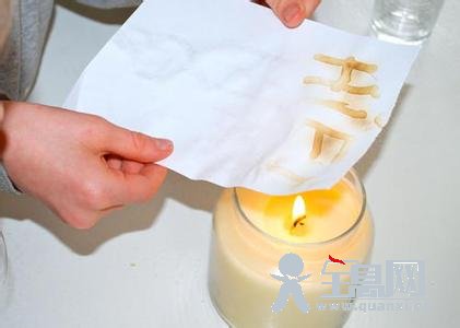 材料:毛笔1支、打火机1个、糖水1杯、白纸1张