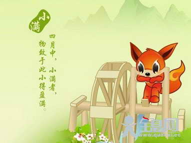 小满(grainbuds)是二十四节气之一,夏季的第二个节气。其含义是夏熟作物的籽粒开始灌浆饱满,但还未成熟,只是小满,还未大满。每年5月21日或22日视太阳到达黄径60°时为小满。2011年小满节气的时间为5月21日。