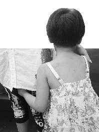 见到“黑爷爷”,语语慌乱地抱住了妈妈的腿。