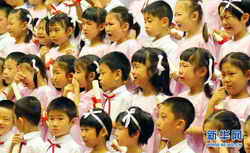 7月17日,沈阳皇姑区实验幼儿园的小毕业生们在毕业典礼上。当日,沈阳皇姑区实验幼儿园为毕业班的小朋友举行“给爱与童心一片飞翔的天空”毕业典礼,136名小毕业生领到了自己人生中的第一张毕业证书。新华社发(李雨泽 摄)