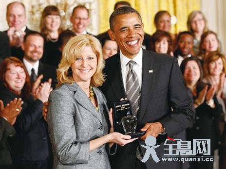 在飞往中国的飞机上,丽贝卡米沃基(Rebeeca Mieliwocki)还在紧张地批改学生作业。丽贝卡米沃基(以下简称丽贝卡)是美国加州路德伯班克中学的一名七年级英语教师,在做了16年教师后,她获得了这个行业的最高荣誉。她被评为美国年度教师,在320万名美国幼儿园和中小学教师中,每年只会评选出一位年度教师,成为美国老师的代表。随后,她在白宫受到了美国总统奥巴马的接见,并被授奖。