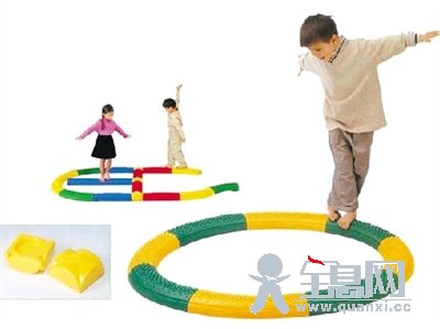 训练器材:圆筒、平衡踩踏车、按摩大龙球、滑梯、平衡台、晃动独木桥、袋鼠袋、圆形滑车。