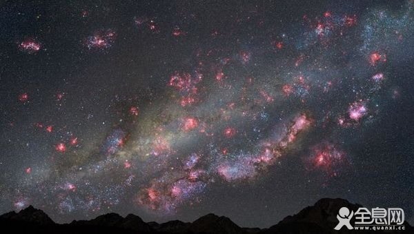 100亿年前的夜空一片红色,十分壮观,这说明我们能看到的银河系类星系非常年轻。那些耀眼的粉红色是气体云,孕育着新生的恒星,而蓝白色的则是年轻的恒星群。从某种角度上讲,这是一幅充满生机的图景。