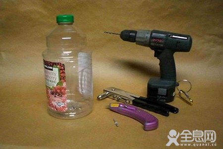 废旧饮料瓶,细钻,打孔机,美工刀,细的链接螺丝。