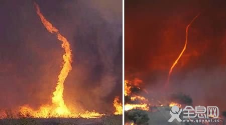 旋转火焰又叫火怪,火旋风,是指当火情发生时,空气的温度和热能梯度满足某些条件,火苗形成一个垂直的漩涡,旋风般直插入天空的罕见现象。