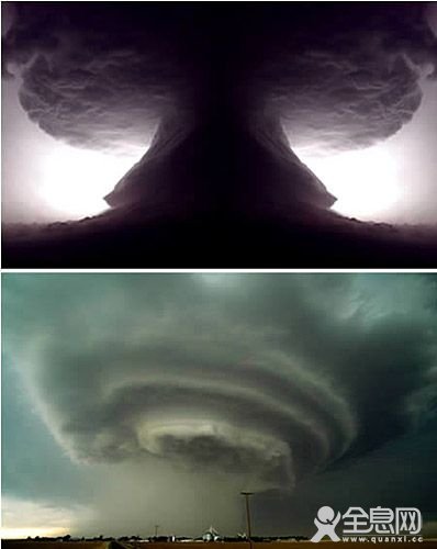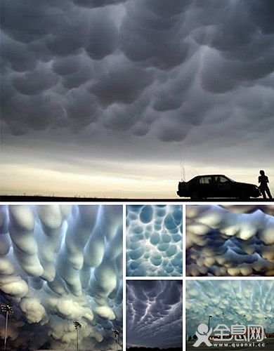 乳状云还有一个更形象的名字,“颠簸的云彩”,它是在积雨云下方形成的乳状型积云。因下降气流中温度较冷的空气与上升气流中温度较暖的空气相遇形成。