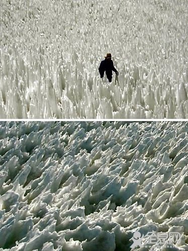 冰锥群是自然界奇特的景象之一,它主要分布在高海拔,终年积雪的山区,冰锥大小不等,小到几厘米大至5米不等。起初,太阳光照射在积雪上,形成许多不规则的凹面,而之后的一段时间,凹面接受的太阳光,较周围冰峰多,吸热升华的程度也越大,最终形成深槽,冰锥站立在它们之间。