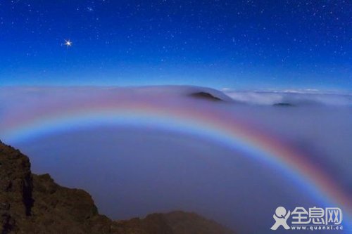 古人有一首咏虹诗云:谁把青红线两条,和云和雨系天腰?玉皇昨夜銮舆出,万里长空架彩桥。彩虹是由空中雨滴像三棱镜那样折射分解阳光而形成的,所以彩虹通常在白天有太阳的时候出现。然而,令人惊异的是,夜间的天空,也会出现彩虹,不过不是白天的日虹,而是月虹。