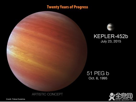 据NASA介绍,该系外行星——Kepler 452b 比地球大概大60%,距离地球1400光年,位于天鹅座。因比地球大概大60%,所以Kepler 452b 被归入“超级地球”类的系外行星,因为位于宜居带,位置适中,因此允许液态水在它的表面存在。
