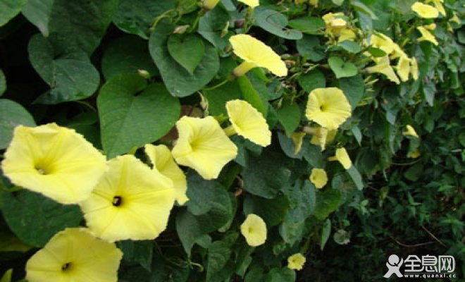 牵牛花最初只开蓝花,经过多年的改良与培育,现已有红色、桃色、紫色、茶色、白色等多种颜色品种。一般来说,开黄色花需要植物体内有类胡萝卜素、橙酮等黄色色素,而牵牛花恰恰缺乏这些色素。