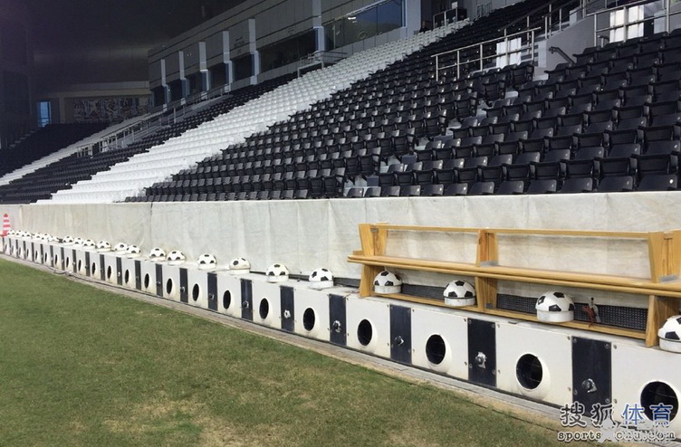 果然,比赛场地现场四周有很多通风的小圆孔,这些都是冷气孔,这样相当于给球场安置了空调系统。国家队在7日晚上训练的时候球场温度大概在25度,等到明天比赛时候温度应该可以控制得再低一些。