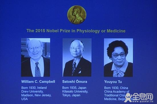 2015年度诺贝尔生理学或医学奖已经宣布,其奖金的一半授予威廉·坎贝尔(William C. Campbell)和大村智(Satoshi ōmura),以表彰他们在创新蛔虫疗法方面的贡献;另一半授予屠呦呦,以表彰她在治疗疟疾方面的贡献。