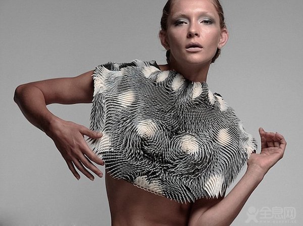 2015年7月美国南加利福尼亚大学设计师近日设计出一件神奇的3D打印衣,并为其取名为“凝视的爱抚”。这种3D打印衣集照相机、人脸追踪算法和回应模式为一体,可探测旁观者的性别和年龄,并随其目光的移动作出回应。