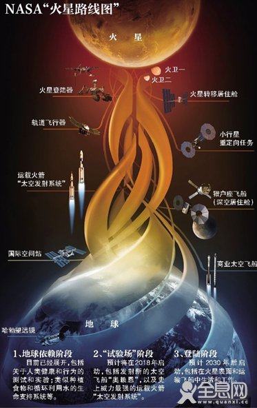 在上月宣布火星表面发现了有液态水活动的“强有力”证据后,美国航天局8日公布了一份人类登陆火星的详细计划。这份长达36页的报告把登陆火星分成三个阶段实施,认为虽然面临许多挑战,但都“可以克服”。